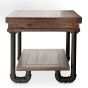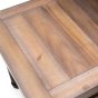 - Los niveles superior e inferior de la mesa auxiliar están construidos con madera maciza de acacia con chapas.