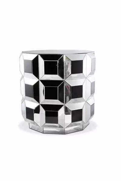 Delicada mesa redonda lateral finamente tapizada de espejo. Una mezcla diversa de piezas impresionantes con detalles exquisitos como cristal tallado, pedrería biselada y tintes discretos se encuentran en varias piezas a lo largo de esta abundante colección. Con categorías que incluyen piezas decorativas, decoración de paredes, decoración de mesa, lámparas y relojes; la belleza se refleja en cada tesoro atemporal.