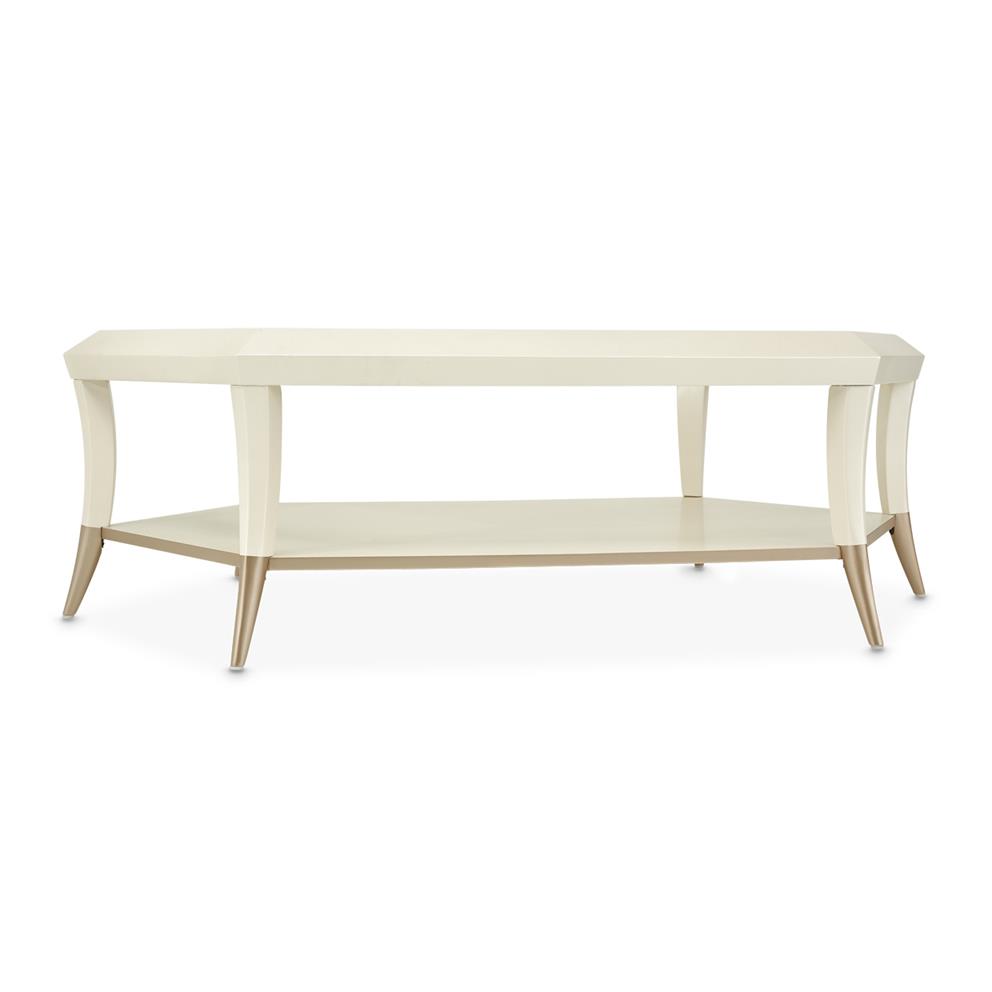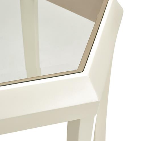 ¡Muestra tus ángulos! La mesa de cóctel hexagonal La Rachelle está cortada en forma de piedra preciosa con un acabado perla, detalles en Rose Gold, y el estilo perfecto para realzar su sala.