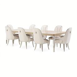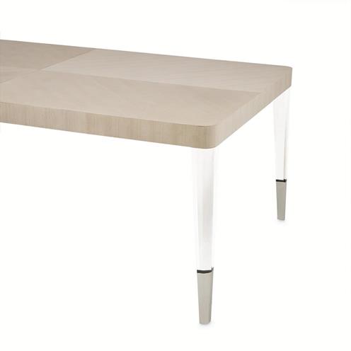 La mesa de comedor rectangular Penthouse es una pieza moderna y refinada, ideal para espacios contemporáneos que buscan elegancia y funcionalidad. Su diseño limpio y minimalista destaca por una superficie lisa en tono claro, complementada con patas estilizadas en acabado blanco brillante y detalles metálicos en la base que aportan un sutil contraste. Esta mesa incluye dos extensiones de 22 pulgadas, lo que permite ampliar su longitud de 205.74 cm a 317.50 cm, adaptándose fácilmente a diferentes necesidades de espacio. Con una profundidad de 116.84 cm y una altura ajustada entre 76.20 y 76.84 cm, ofrece comodidad y estilo en partes iguales, siendo perfecta tanto para reuniones formales como para cenas cotidianas en un entorno sofisticado.