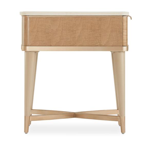 Mesa de madera de olmo en acabado champán con cubierta de mármol. La colección Malibu Crest de Michael Amini y Jane Seymore fue hecha para interiores que adoptan la elegancia moderna. Los detalles de acento muestran una calidad que puede durar años con un diseño único que crea un punto interesante. Exhibiendo cremosos champagne, curvas dramáticas y diseños eclécticos hechos para interiores que adoptan la elegancia moderna.