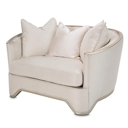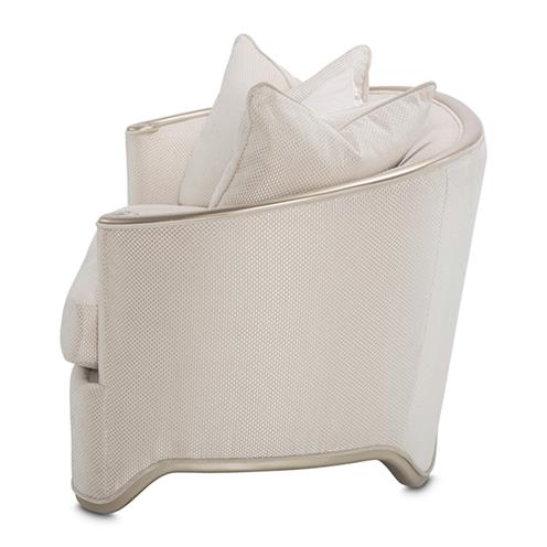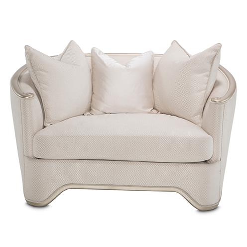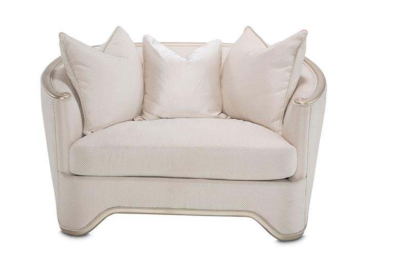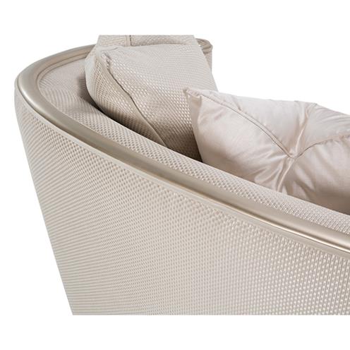 Hermoso y cómodo sillón con cojines en fina tela y acabados en platinado. Tonos brillantes, tejidos texturizados y una forma elegante. La elegancia lo es todo, ¡y el sillón y medio London Place lo tiene todo!
