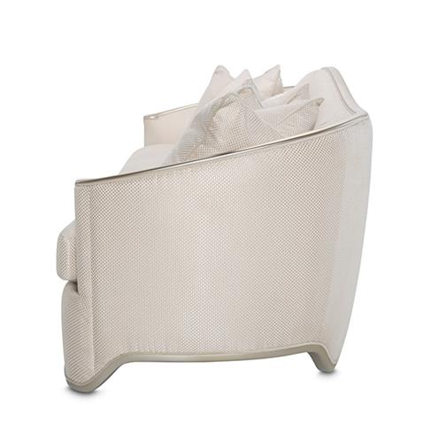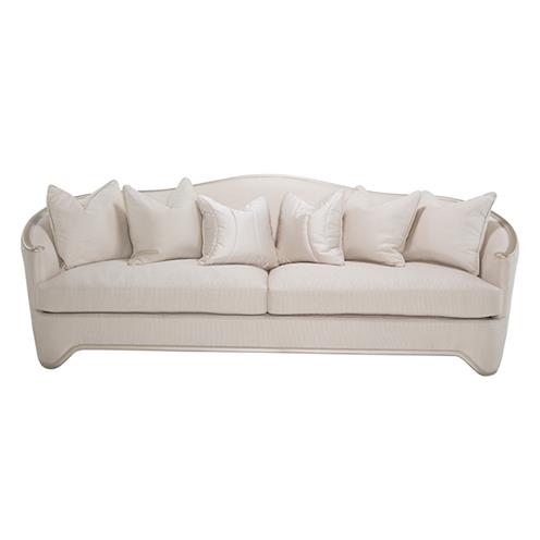Majestuoso sofá con cojines en finas telas y detalles en platinado. Los suaves tonos champán, las texturas sutiles y una silueta elegante hacen de este sofá London Place la mejor pieza para iluminar tu lujosa sala.